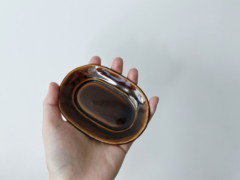 깊은 브라운 컬러의 오발 플레이트입니다.